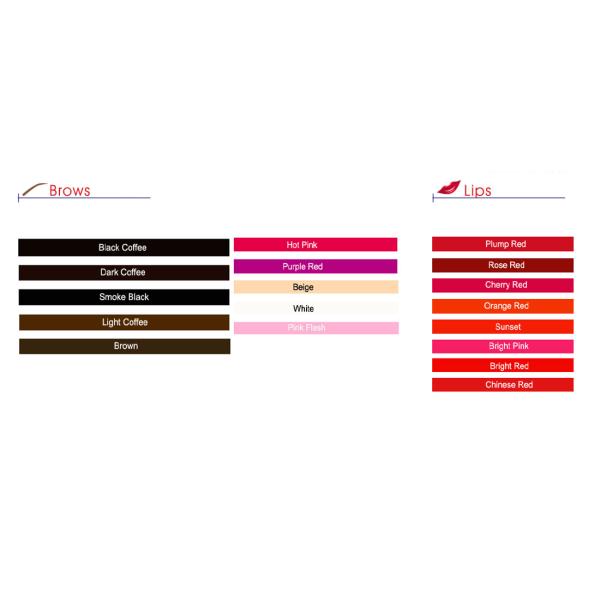 4,There are semi-cream, cream, liquid and high concentration pigment more than 18 type colors to choose for eyebrow, eyeliner, lip, scalp, etc.